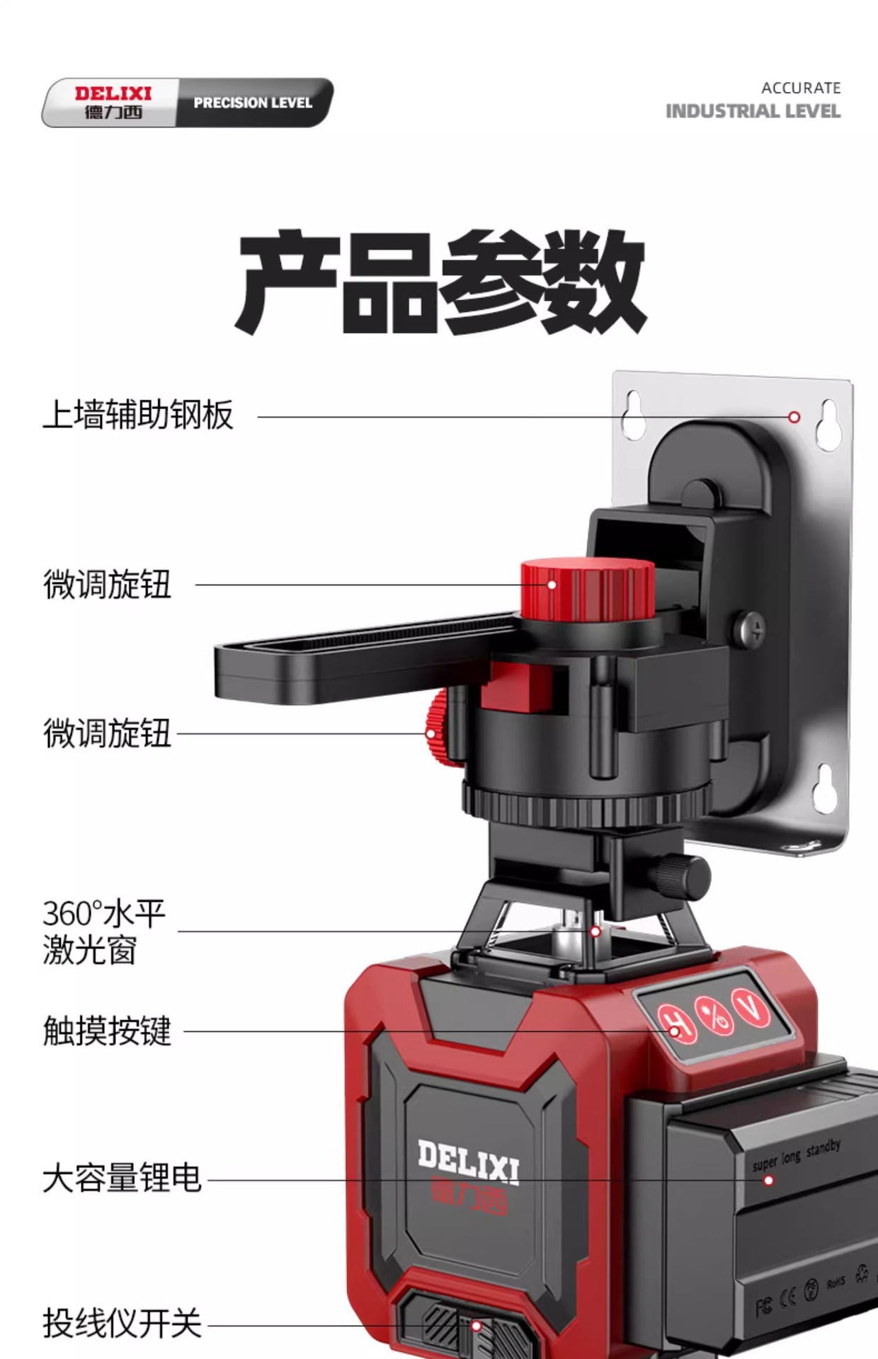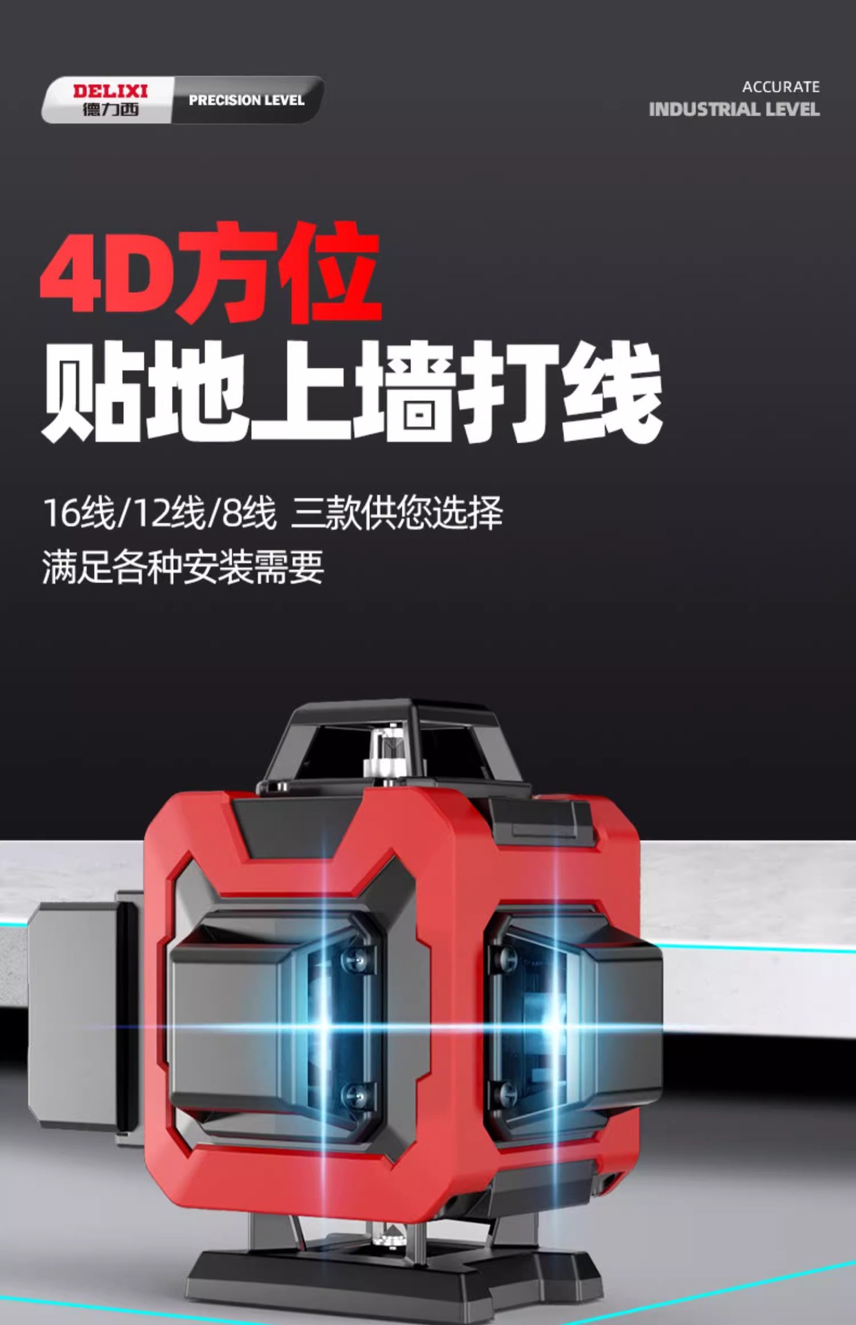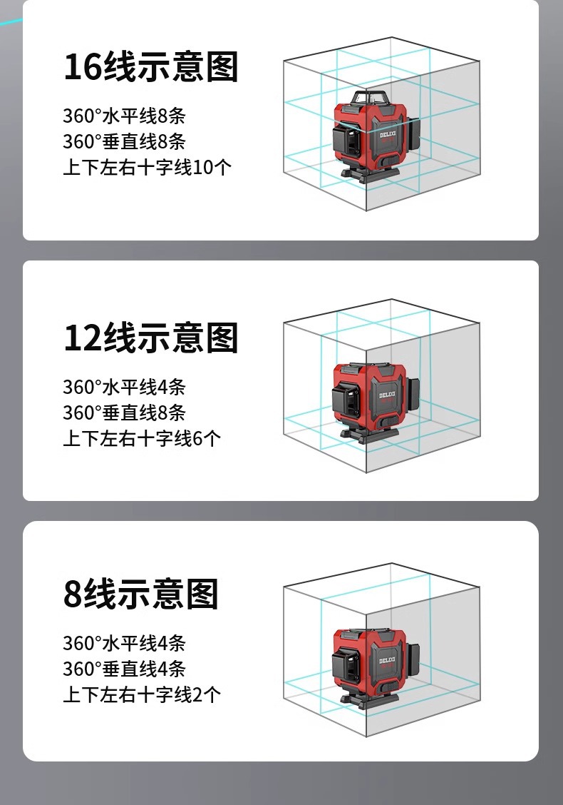 Delixi Infrared Level Green Light 12 Lines 16 Lines High Precision Automatic Leveling Instrument Can Adjust The Thickness